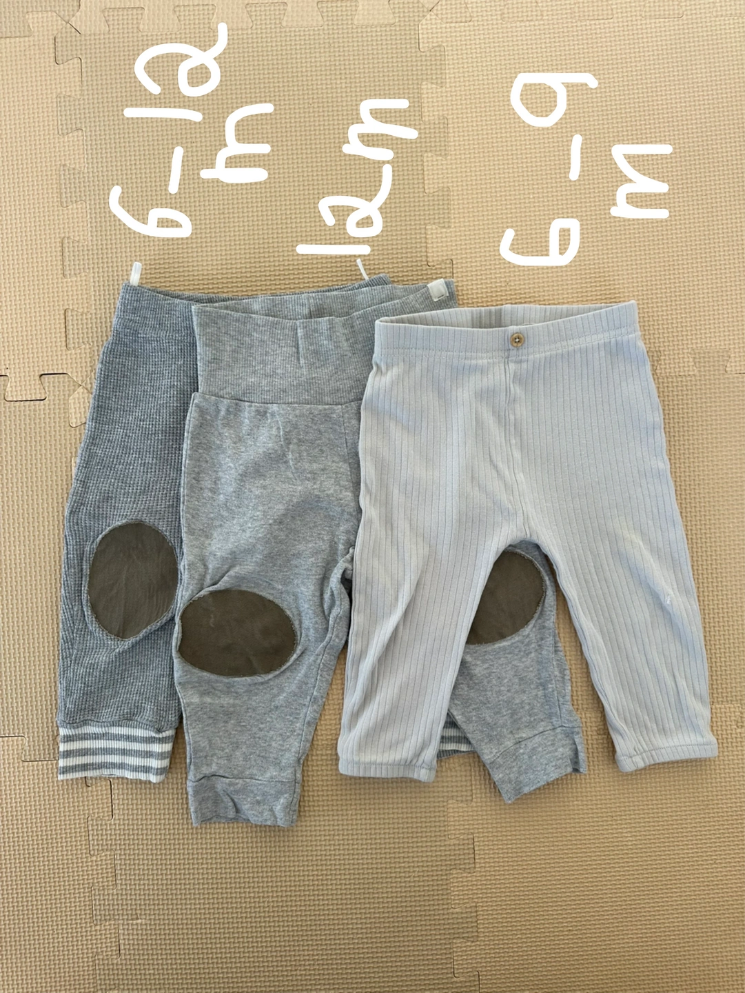 Selling a bundle of baby clothes, perfect for little ones aged 6-12 months! Included are pants and bibs in various shades of grey and white.