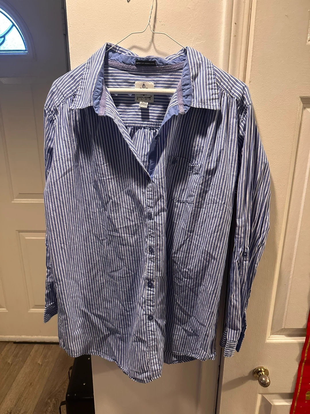 Selling a striped button-down shirt in good condition! It's perfect for a casual day out or dressing up for work. The shirt features a classic button-down style with a comfortable fit. Feel free to reach out if you're interested or have any questions!
