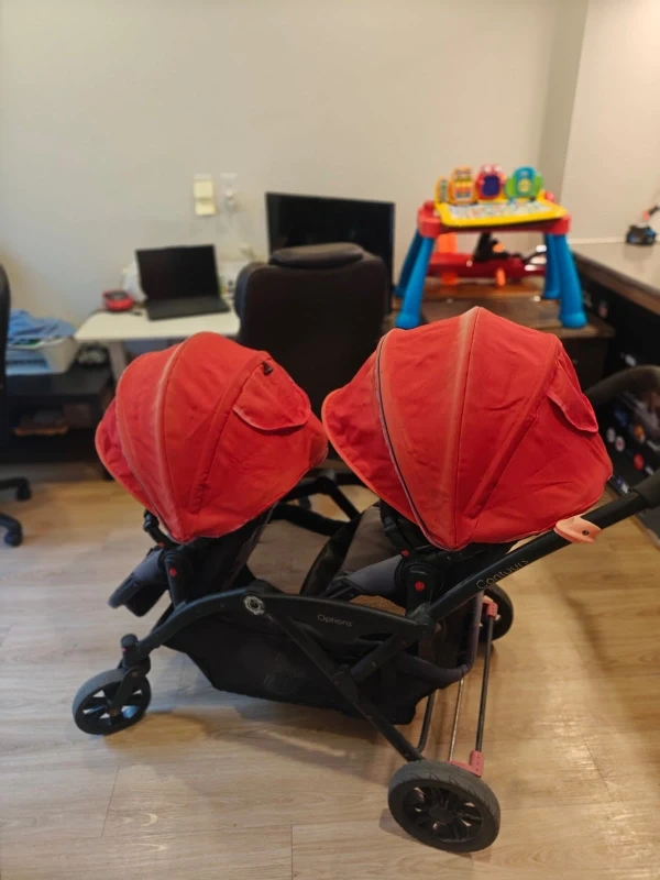 Selling a Contours Options double stroller. It's in great condition and ready for your little ones! Perfect for parents with twins or children of different ages. The stroller is designed for versatility and comfort, making outings a breeze