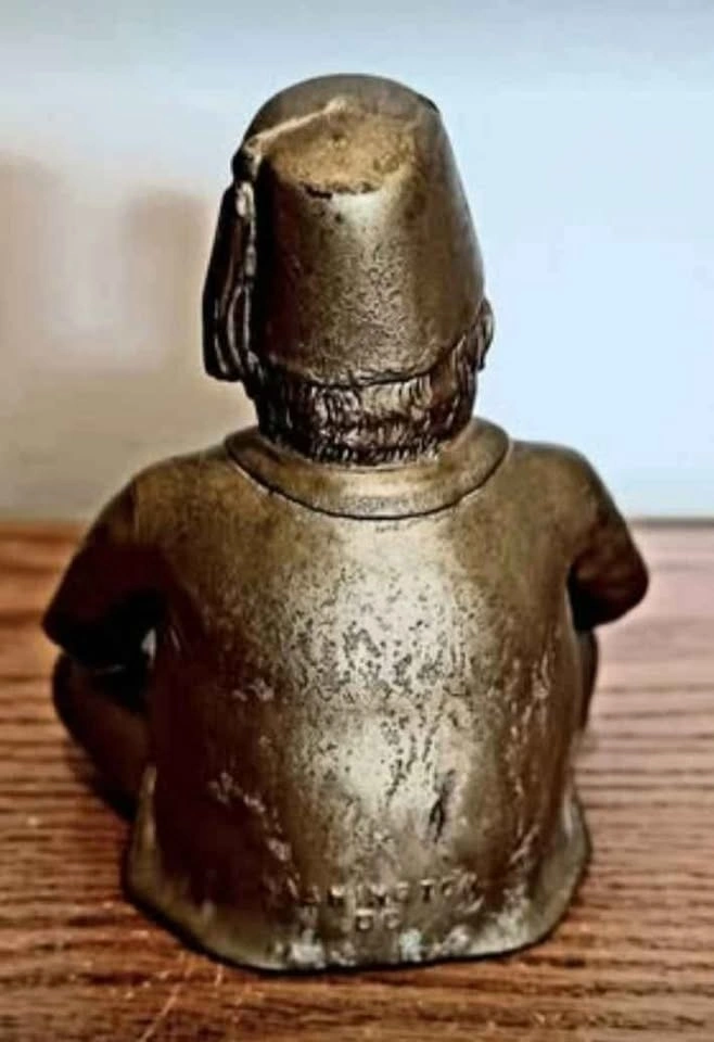 Antique, Early 1900's, Rare, Household Shriner Masonic Freemason Gilt Metal Design: A man wearing a fez, a traditional Shriner's hat, and a suit with a bow tie.