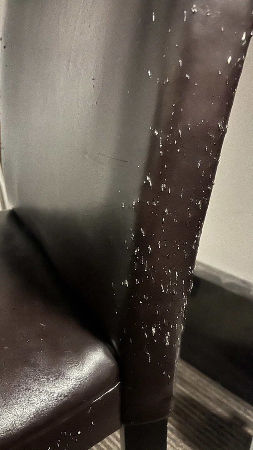 Selling a set of two dark brown dining chairs. They have a sleek design and would look great in any dining room! They are in amazing condition, except each has some puncture marks on the back from an overly affectionate cat. These could probably be touched up or smoothed easily, but we are moving to bench seating and so no longer need these spare chairs (they were not part of our main set, and so are also barely used!)