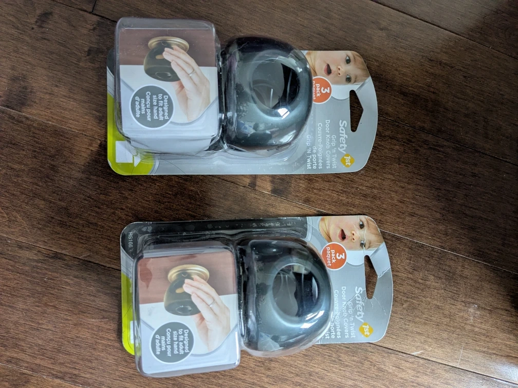 Selling two brand new packs of Safety 1st Grip 'n Twist Door Knob Covers. Each pack contains 3 covers, designed to make door knobs difficult for little ones to open. Keep your kids safe with these!
