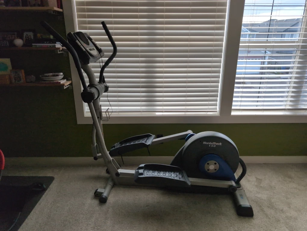 Selling a NordicTrack 130 Elliptical machine. It's in good condition and ready for someone looking to get a great workout at home. Perfect for cardio! The right food support is held in with zip ties but that doesn't affect your work out .