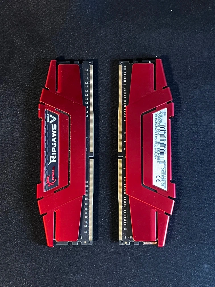 Selling a G.Skill Ripjaws V DDR4 RAM kit. It includes two 8GB sticks, for a total of 16GB. The modules are red and look great in any build. They're in great shape and ready to go!