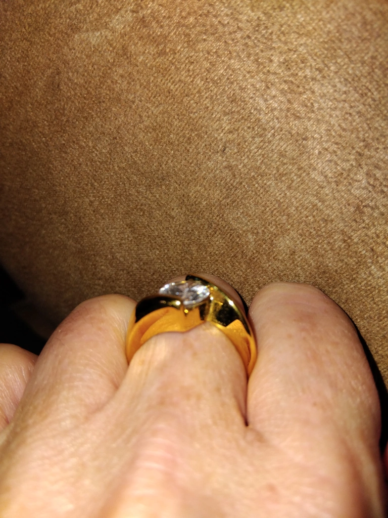 Selling a gold ring featuring a beautiful white stone. It's brand new and ready to add a touch of sparkle to your style!
