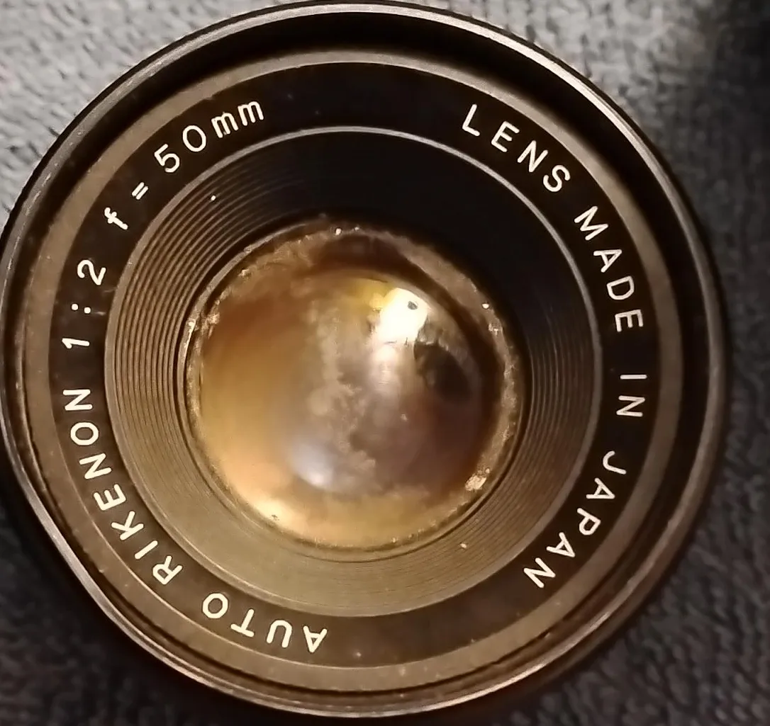 This is an Auto Rikenon 50mm f/1.2 lens, made in Japan. Its f-stop is 1.2. This lens offers a 50mm focal length.
