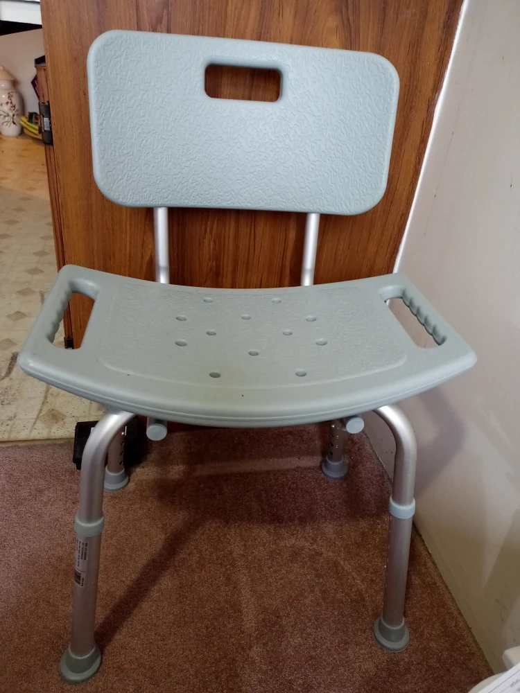 Selling a bath and shower chair with adjustable height legs. It's in great condition and ready to use! Perfect for anyone needing a little extra support in the bathroom