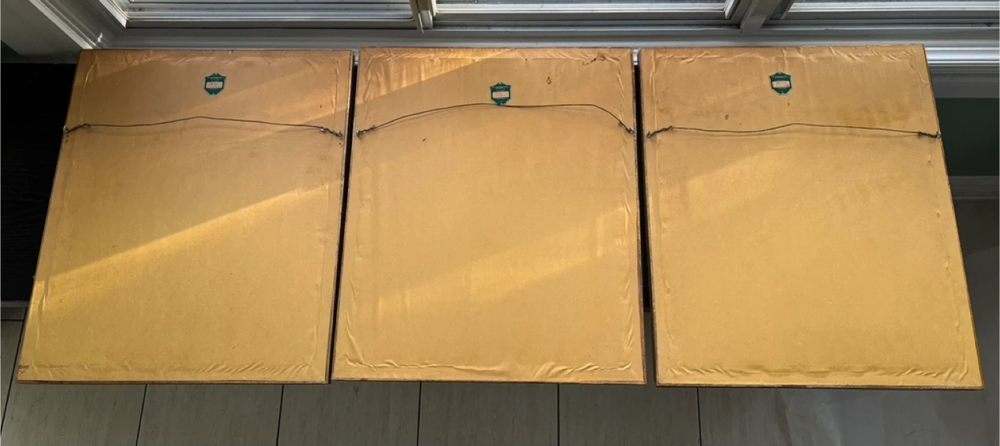 Selling a set of three framed art prints featuring military figures on horseback and soldiers. The frames are a dark wood with a gold trim and red matting. They'd look great in a den or office!