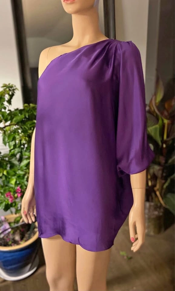 NWT: Aqua Purple Satin Embellished One-Shoulder Shift Dress Size 2 (111)