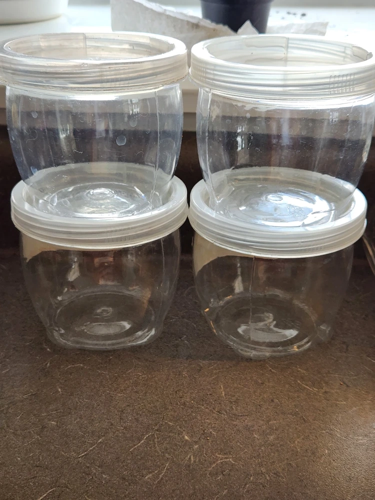 Selling a set of four clear plastic food storage containers. They come with lids to keep your food fresh. They appear to be in good condition and ready to use!