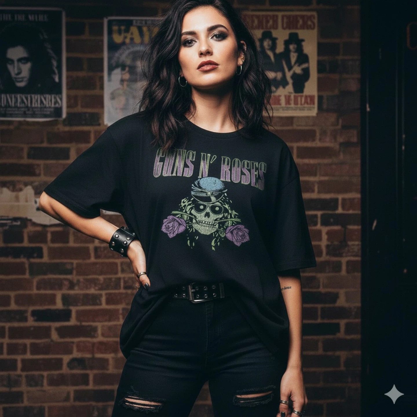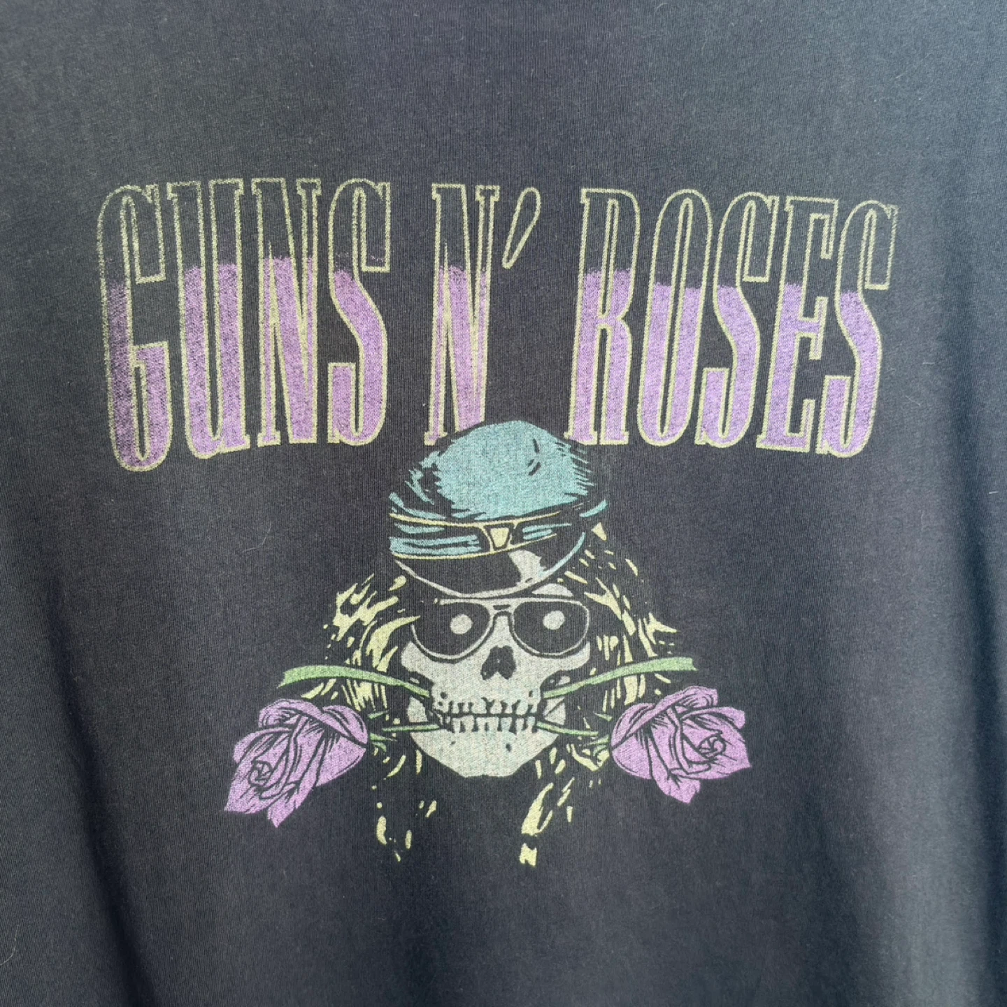 Guns N' Roses, band tee, graphic t-shirt, rock band, oversized, boxy, black t-shirt, skull and roses, rock and roll, casual, unisex, XL, extra large, music merchandise.