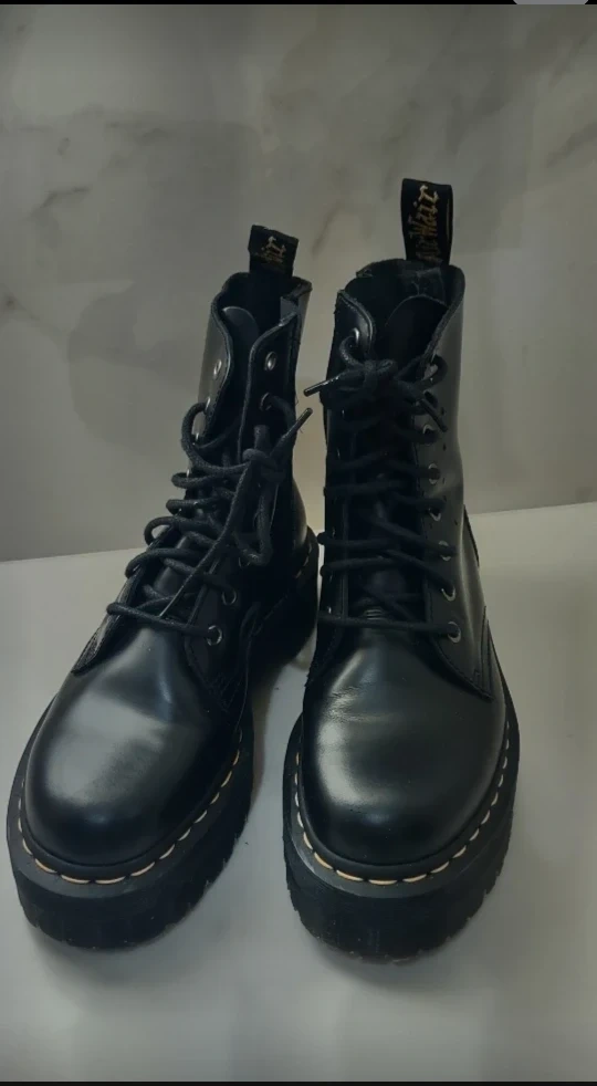 Selling a pair of Dr. Martens Jadon Platform 8-Eye Boots in US size 8/EU 39. These boots have a classic and edgy style with their platform sole and iconic yellow stitching. Originally bought for $260.00+ tax