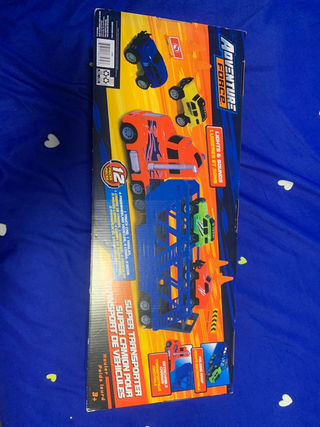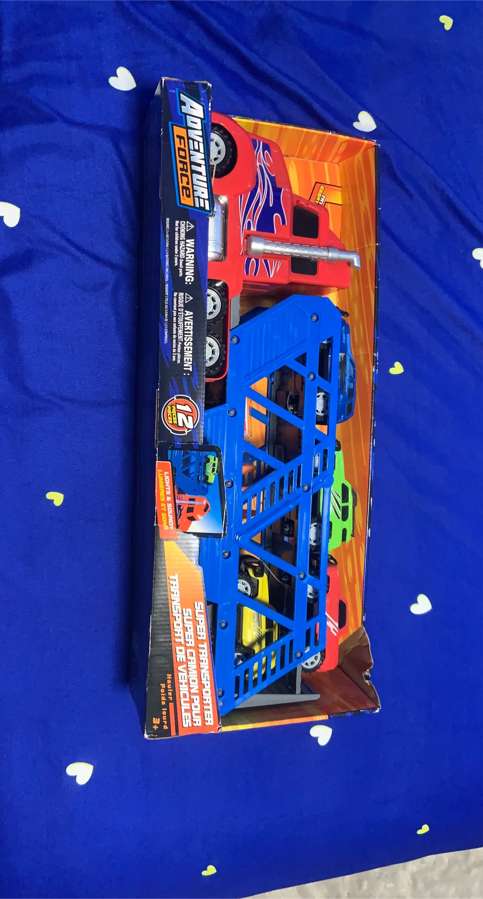 Selling a brand new Adventure Force Super Transporter. It comes with 12 pieces and has lights and sounds! Recommended for ages 3+