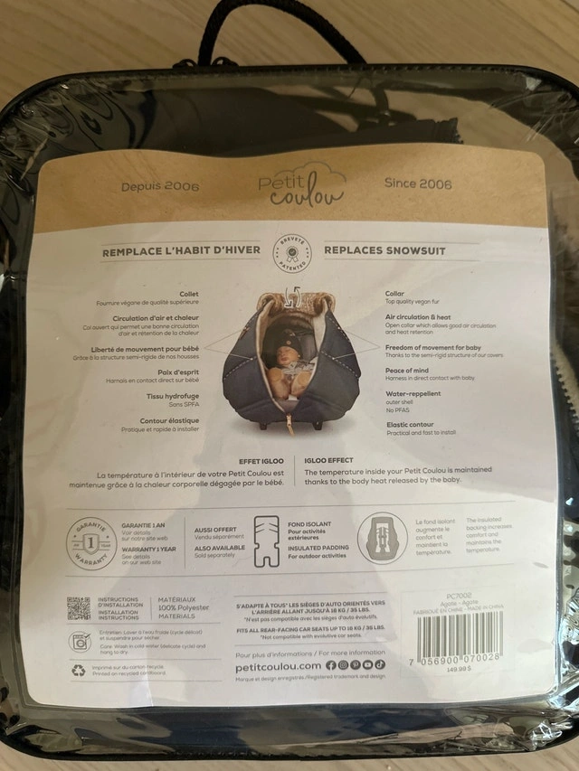 Beautiful navy blue car seat cover for the cold winter months. In nearly perfect condition, only used for a couple of months last year. This car seat cover is super warm, I really loved it, I just no longer need it. For Sale By: Owner