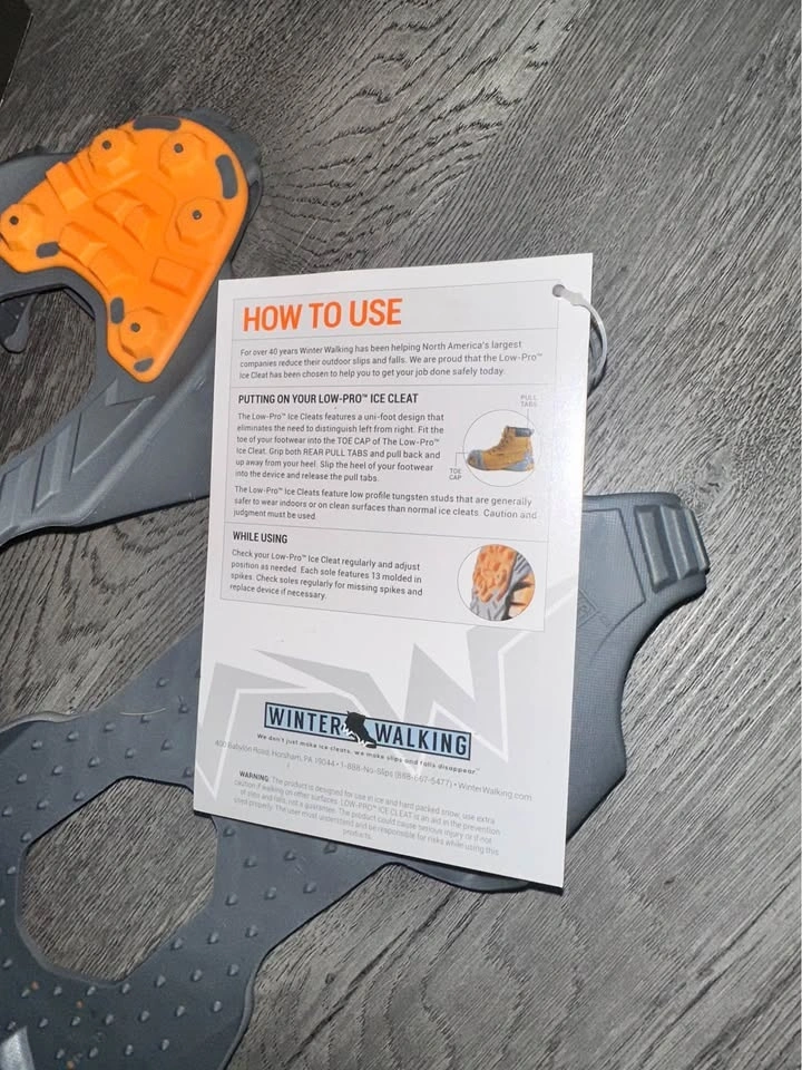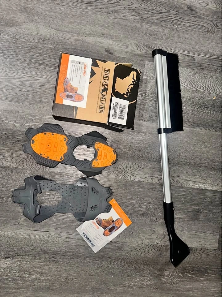 Winter walking is never used, still has tag on it. Snow removal brush has extended length. Works good.