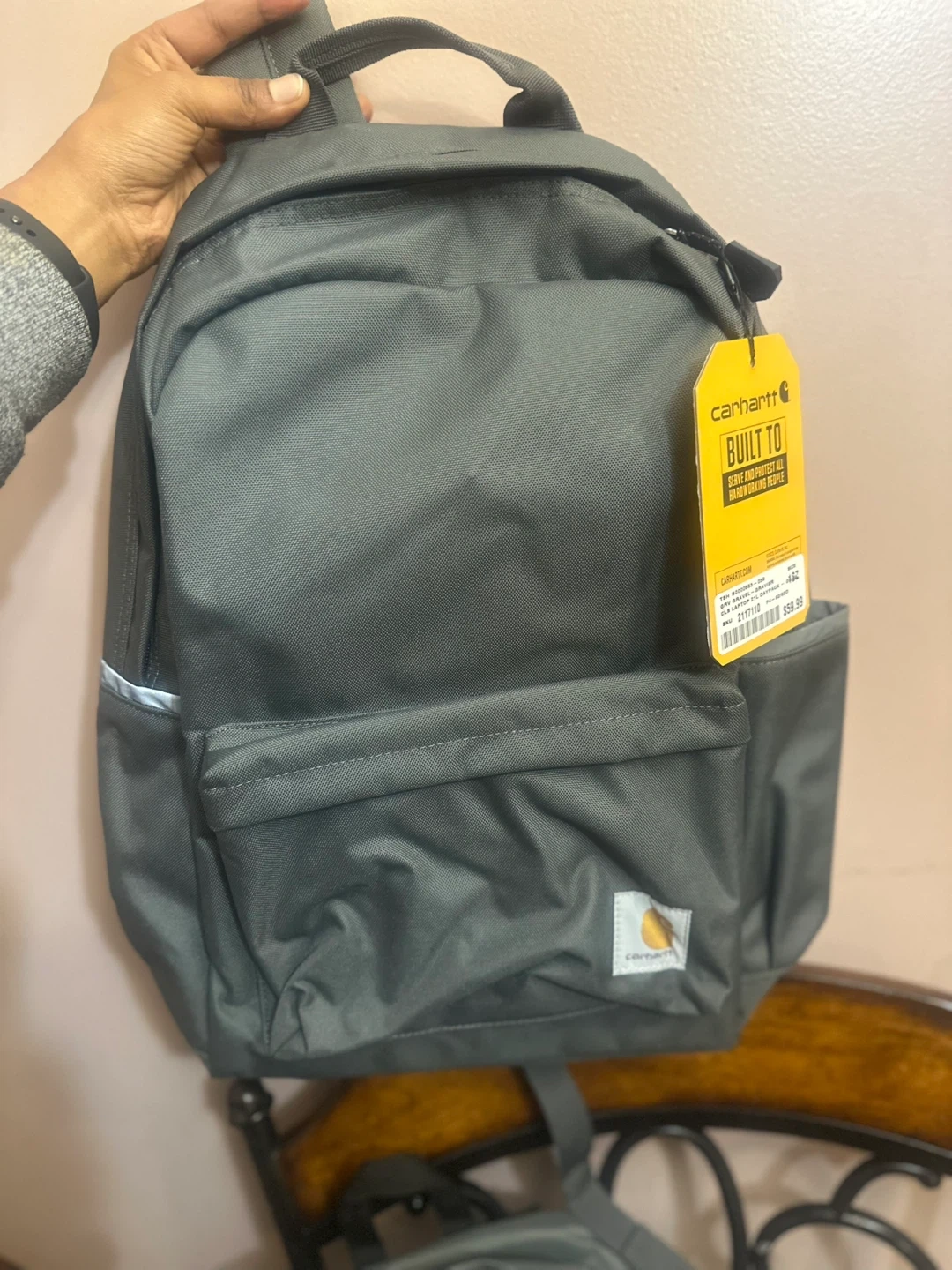 Looking to sell this Carhartt backpack! It's in great condition and ready for a new owner. It is a grey colour and has the Carhartt logo on the front pocket. Perfect for school, work, or everyday adventures!
