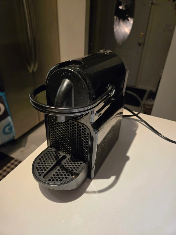 Selling a Nespresso coffee machine in black! It's a compact and convenient way to enjoy your favourite Nespresso coffee at home. Perfect for small spaces and easy to use