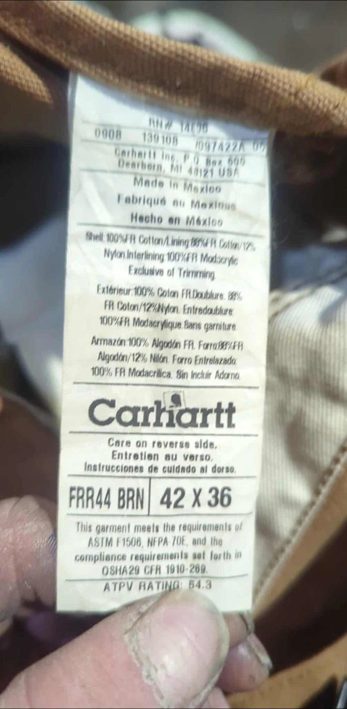 Selling a pair of Carhartt FR bib overalls. They're in great condition, insulated so they are super warm for the winter season. Barely worn.
