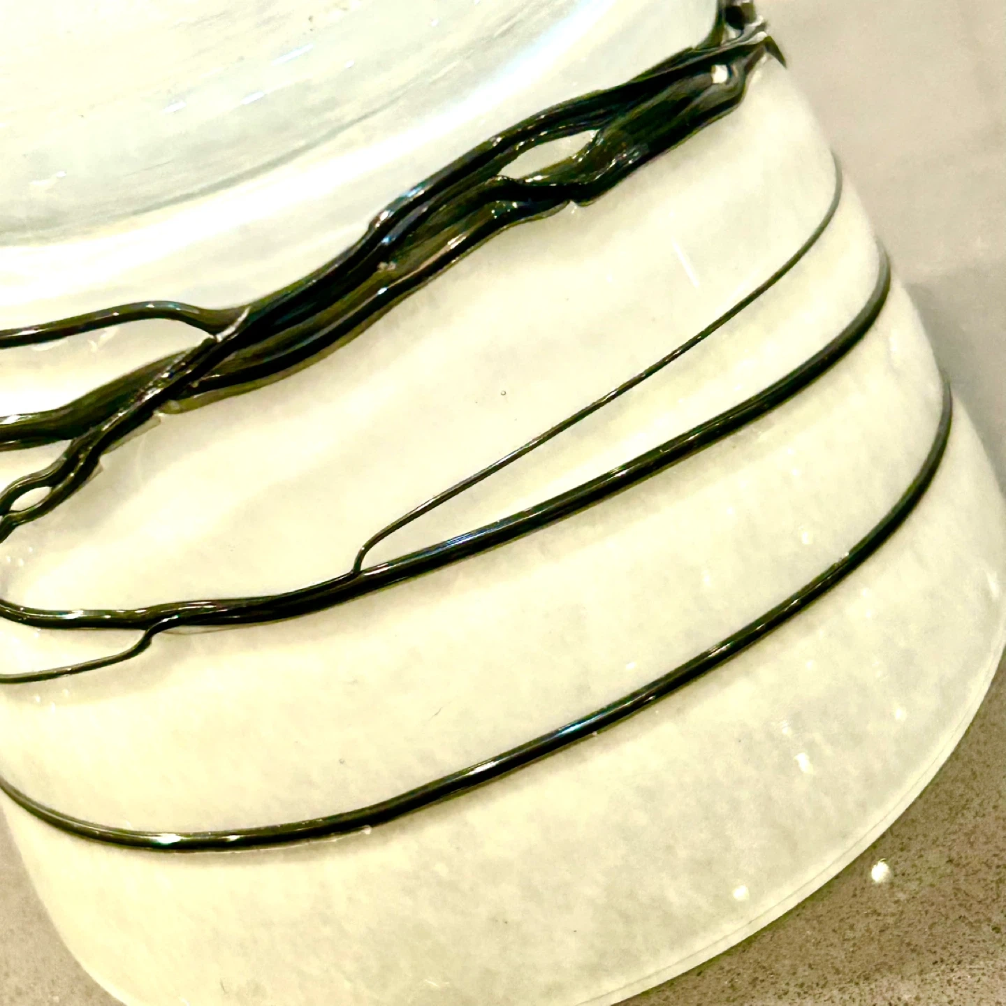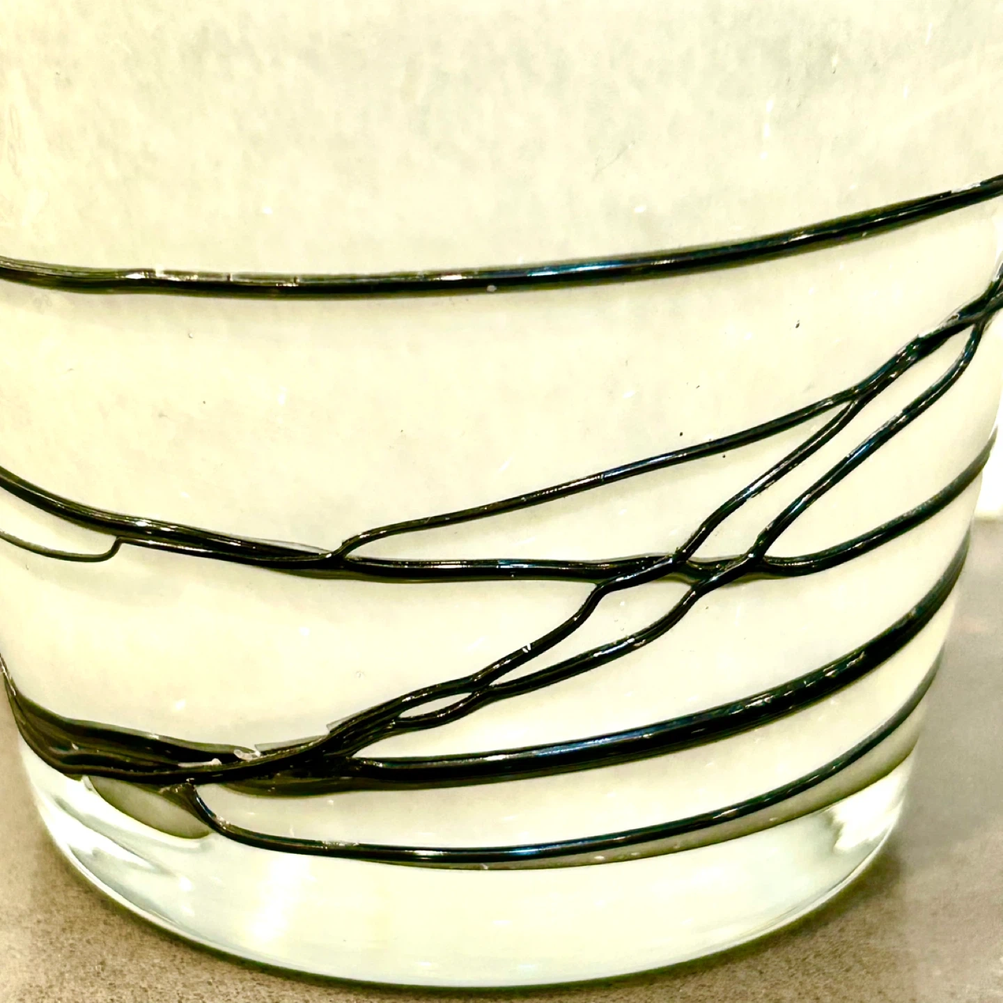 This is an authentic Baobab Collection candle vessel, White Glass with Black from one of their premium large-format editions. Handcrafted from thick, high-quality glass, it features Baobab’s signature white opaque body accented with organic black trailing lines fused directly into the glass. The result is a striking, modern piece that works as décor even after the original candle is gone.
