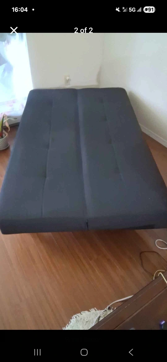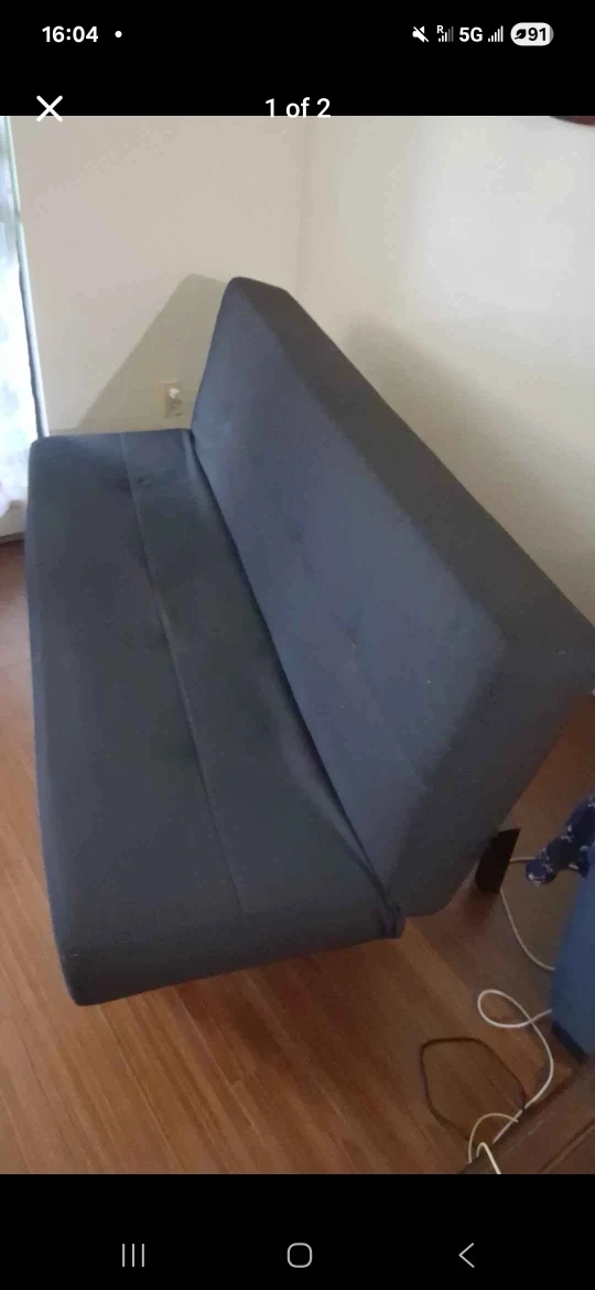 Selling a dark grey futon that's in great shape! It's perfect for a spare room or small apartment. It easily converts from a sofa to a bed, making it super versatile for guests or just lounging around