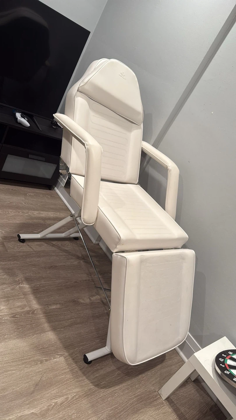 Selling a white adjustable facial bed. It's in great condition and ready for its new home! Perfect for estheticians or anyone looking for a comfortable and versatile treatment chair