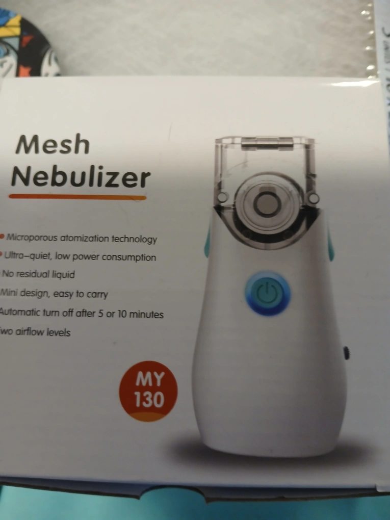 Selling a MY130 Mesh Nebulizer. It features microporous atomization technology and is ultra-quiet with low power consumption. Its mini design makes it easy to carry around. The nebulizer automatically turns off after 5 or 10 minutes and has two airflow levels.