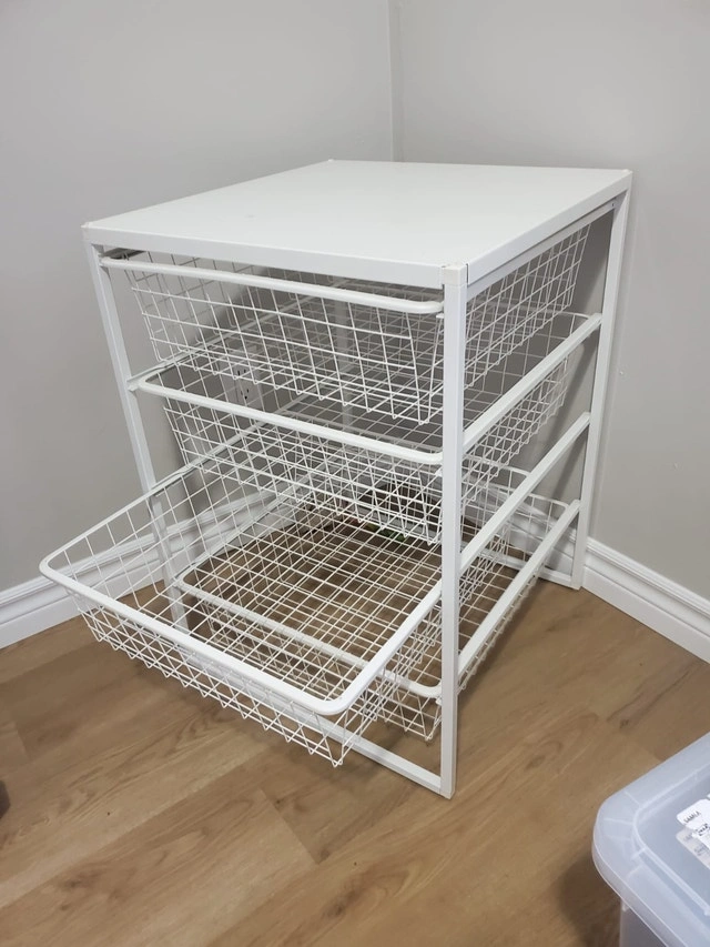 Used - Some wear but still in good condition. Sells at IKEA for $80. Pickup only in the King and Sherman area. Measurements: Width: 50 cm (19 5/8 ") Depth: 51 cm (20 1/8 ") Height: 70 cm (27 1/2 ") https://www.ikea.com/ca/en/p/jonaxel-storage-combination-white-s79305098/