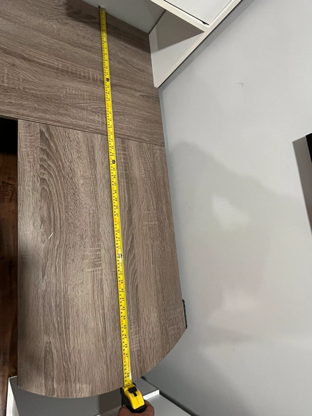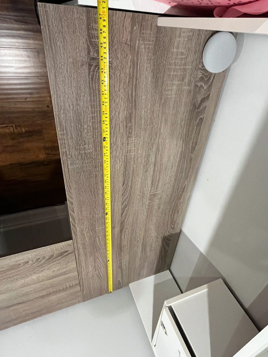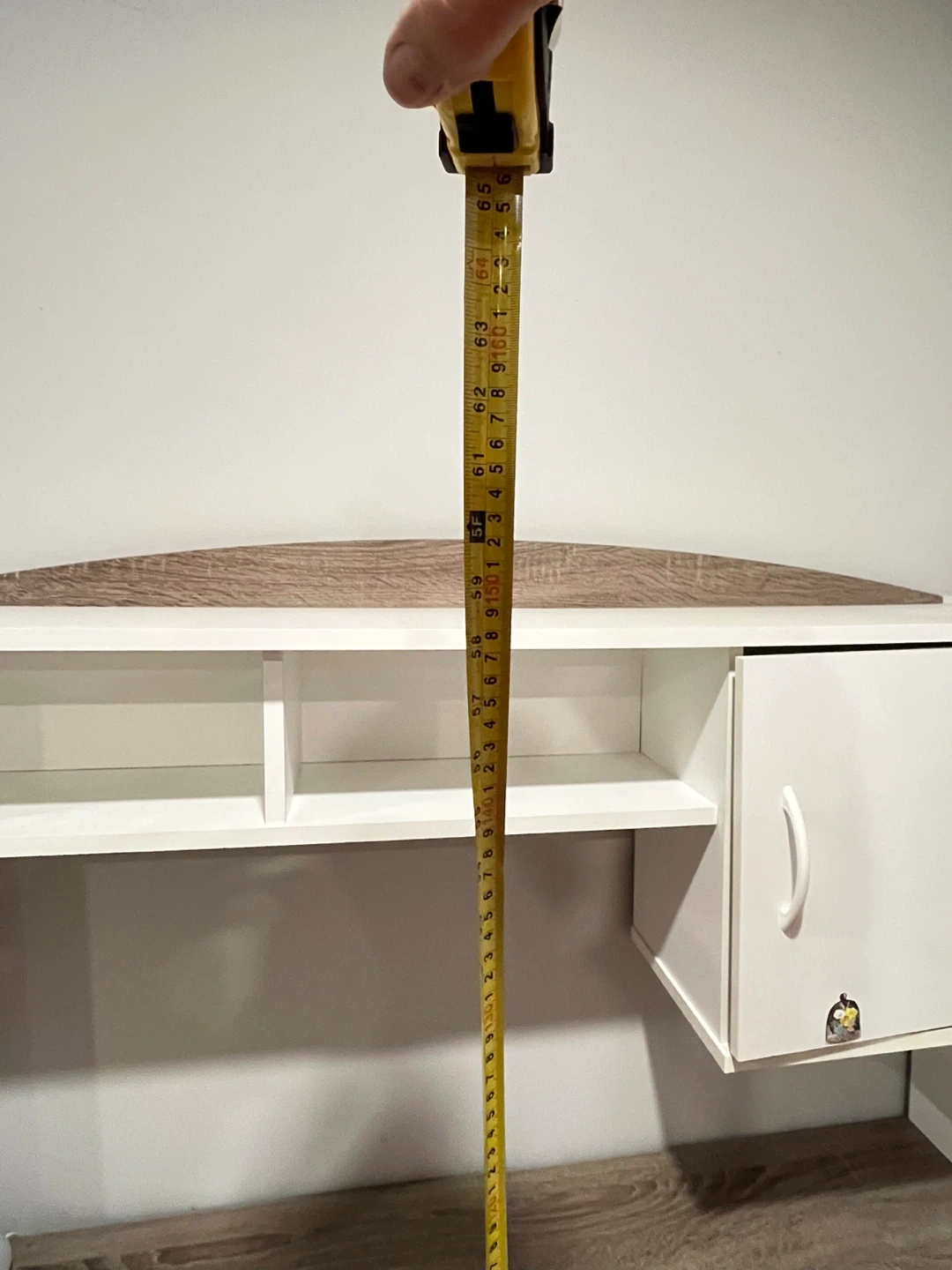 Selling a corner desk with a hutch, perfect for a home office or study space! It features a combination of white and wood grain finishes. The hutch provides extra storage with shelves and a small cabinet. Dimensions are shown in the pictures.