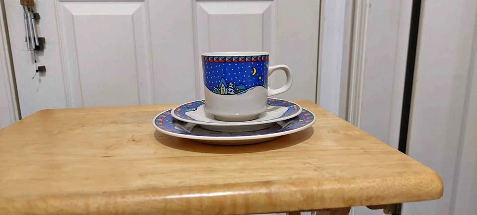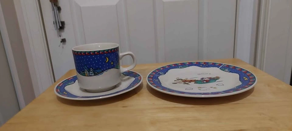 Set Includes:1 ceramic tea cup, saucer, and plate (lunch / brunchsize)