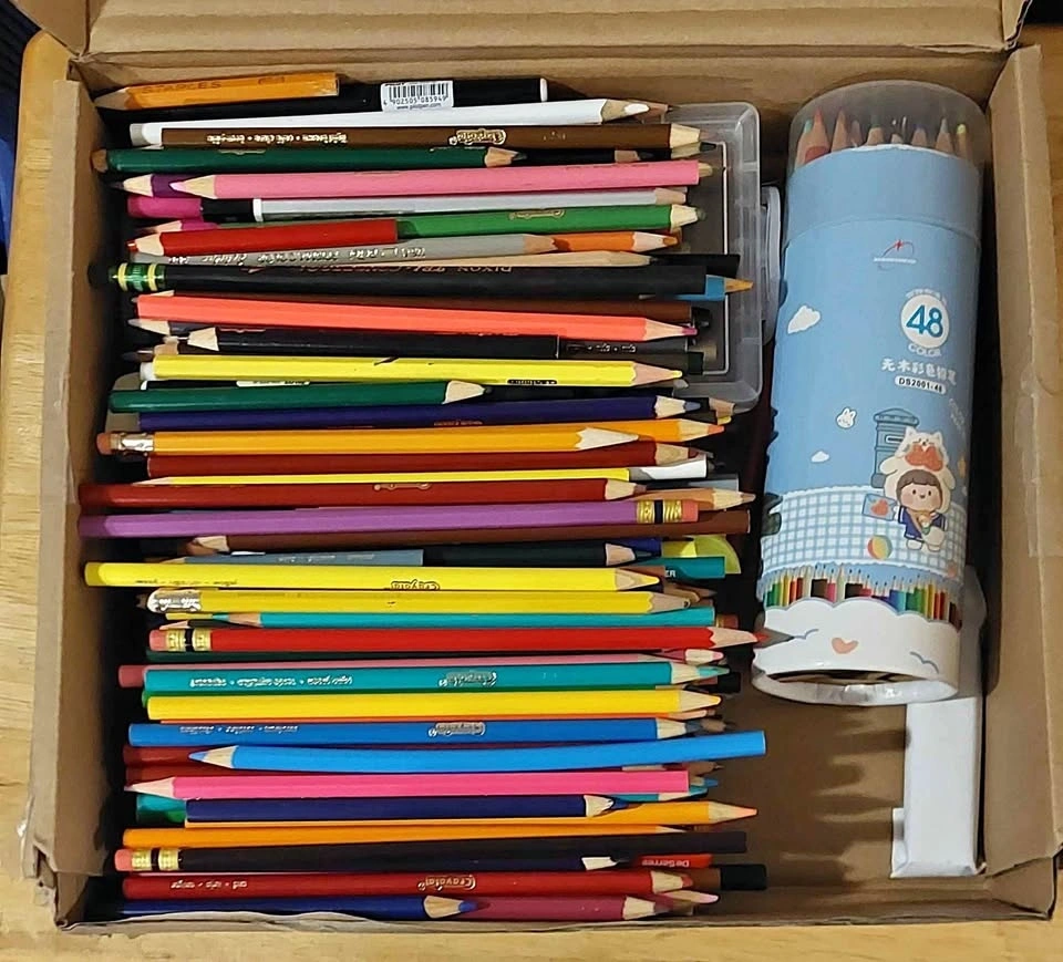 A big box of very assorted pencil crayons, Crayola, Staedtler, Prismacolour, generic. Also approx. 200+ sheets of 11"x17" good quality paper. Includes two closeable plastic pencil cases. Goldfish and tiger pics (not for sale) are examples of art created with these materials. Pick-up in Langford near Happy Valley Road. Cash only please.