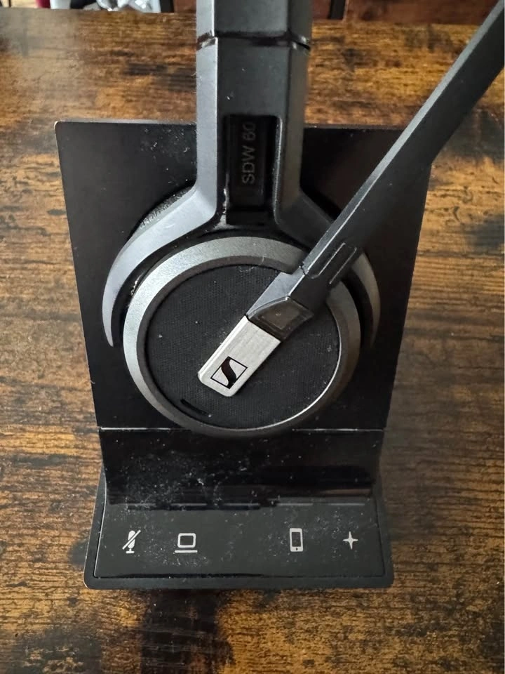 Professional Sennheiser SDW 60 Wireless Headset with SDW 3 BS-US Base Station. Perfect for office or work-from-home. Clear sound, noise-canceling mic, long range & fast charging dock.