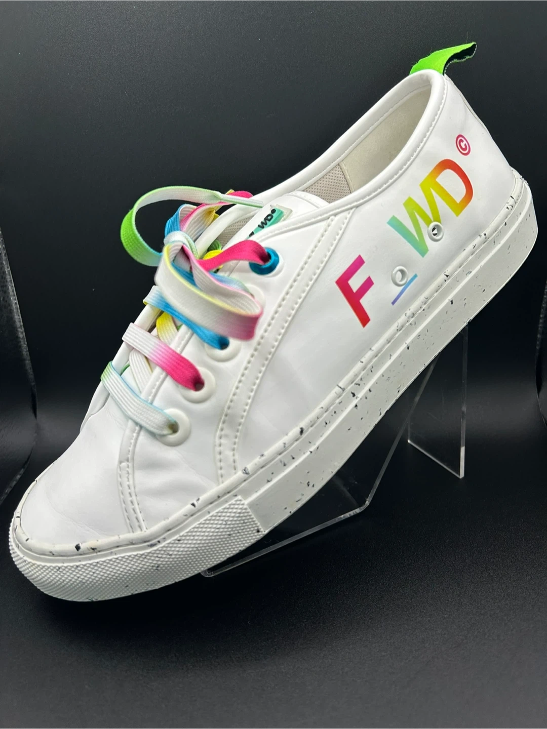 Size 7.5 - F_WD White Sneakers with Rainbow Laces