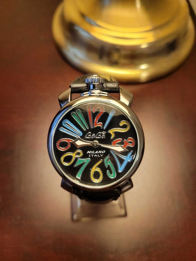 Vibrant watch featuring a colorful dial and a bold Black strap. Perfect for adding a pop of color to any outfit. Brand New Black Rare 2025 GaGa Milano colourful Luxurious Italian Ladies Watch Handmade in Italy. Battery works great!