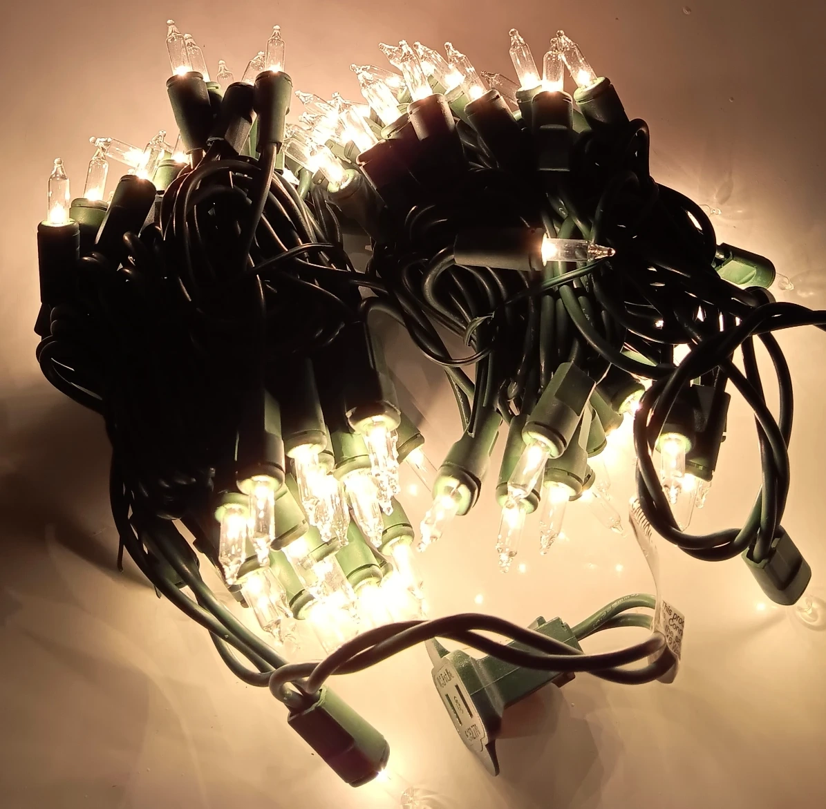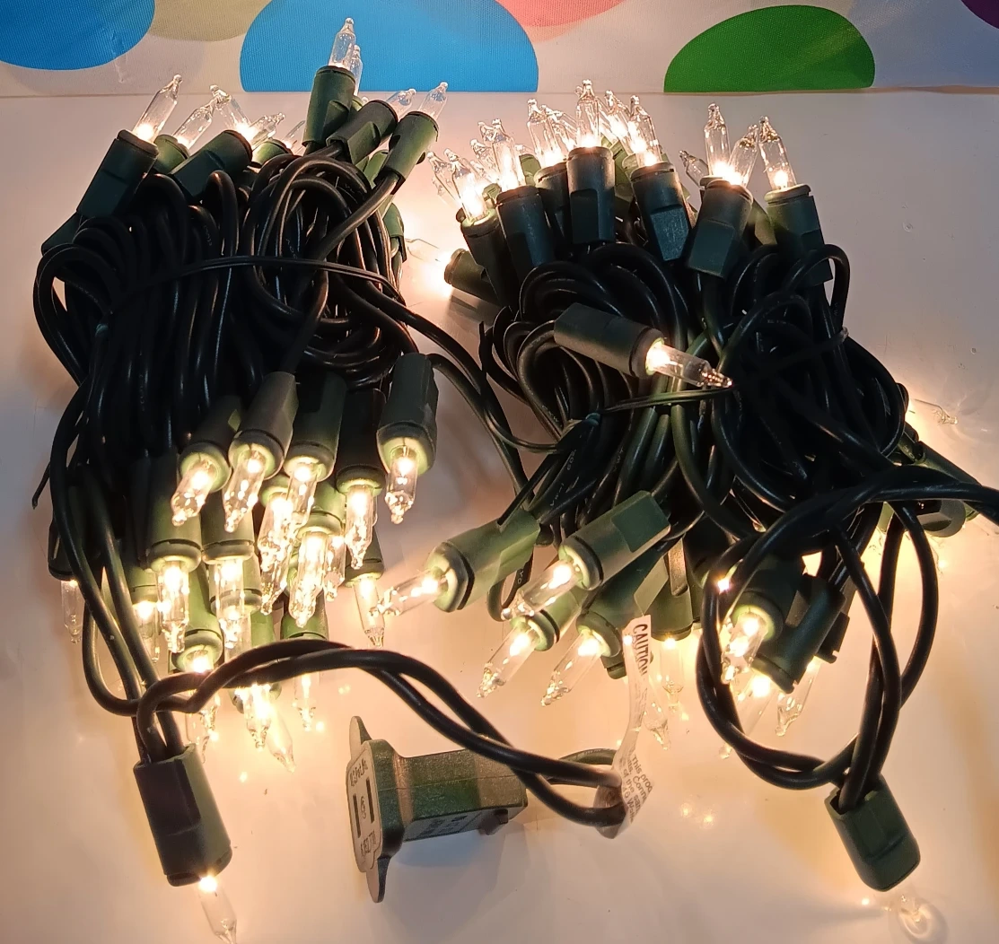 Brighten up any space with these Home Accents Holiday clear mini lights, featuring 100 bulbs on a 20-foot 7-inch strand, suitable for indoor and outdoor use, these lights add a festive touch to any setting. These are used lights.