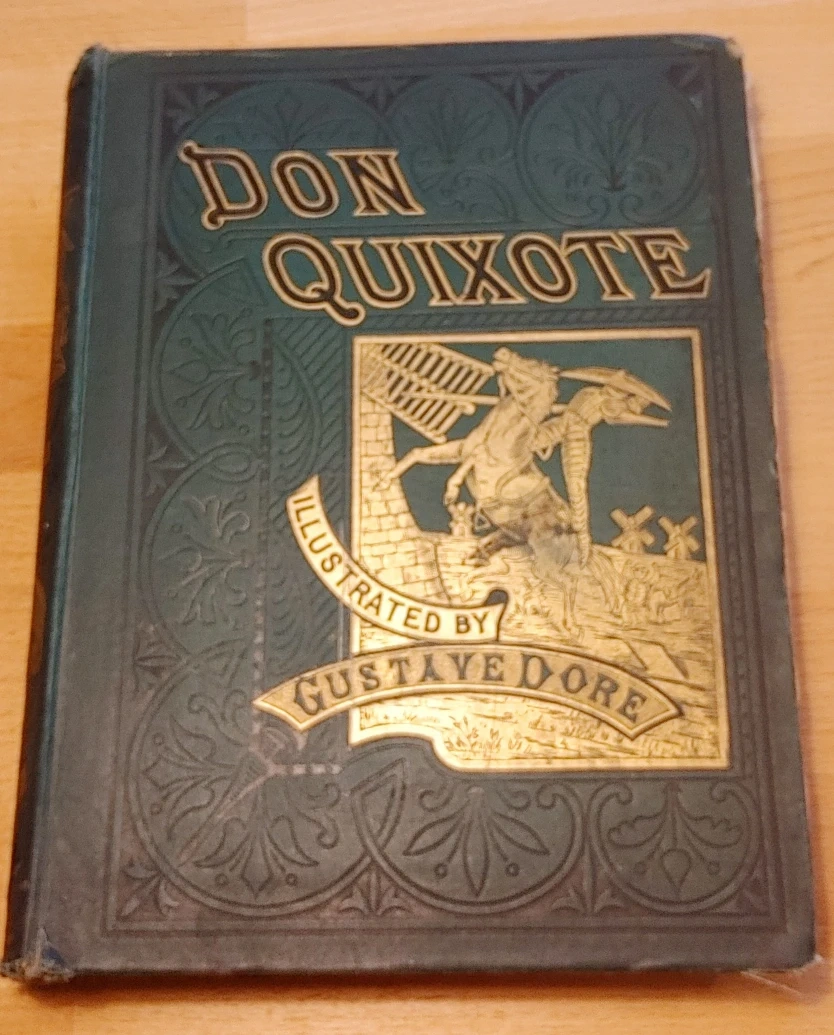 Large sized antique 1880 Miguel de Cervantes Saavedra Don Quixote illustrated by Gustave Dore. Published by P.F Collier, New York City. Book has some damage and spine seperation but considering it's age is in fair to good condition. Smoke free home pick up Mt.Brydges cash only.