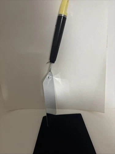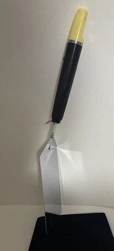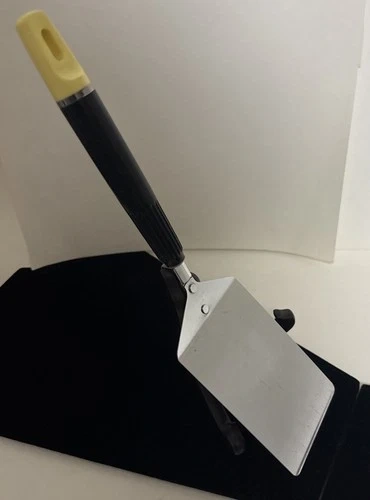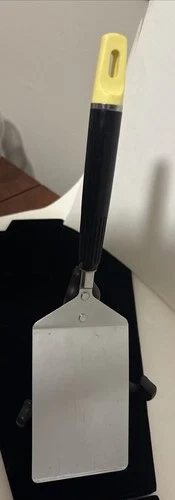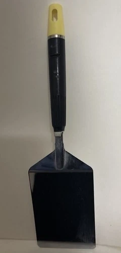 Crafted by Top Drawer, this USA-made stainless steel turner is a must-have tool for your kitchen. The sleek design combines functionality with style, featuring an ergonomic plastic handle that provides a comfortable grip. Its durable construction ensures longevity, while the yellow, black, and silver color scheme adds a pop of vibrancy to your cooking utensils. The turner is designed for versatility, easily flipping pancakes, sautéing vegetables, or grilling burgers. It's heat resistant and lightweight and it includes measurements making it a practical choice for busy chefs. The included stand keeps the tool upright, or on the eve of the pan allowing for easy storage and accessibility. Whether you're a culinary pro or a home cook, this will be a valuable addition to your collection.