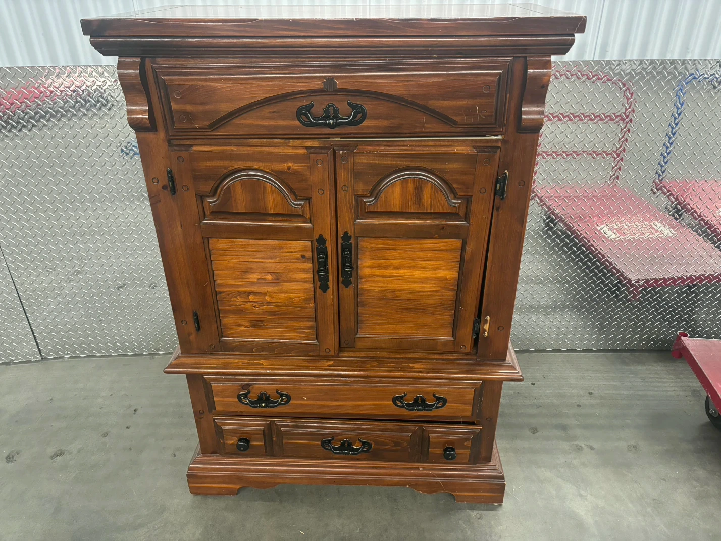 Selling a lovely vintage bedroom set! Includes a wardrobe, two nightstands, and a dresser. All pieces are made of a beautiful brown wood with classic detailing. Perfect for adding a touch of old-world charm to your bedroom
