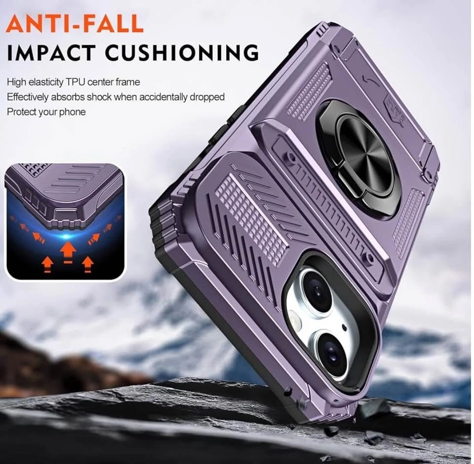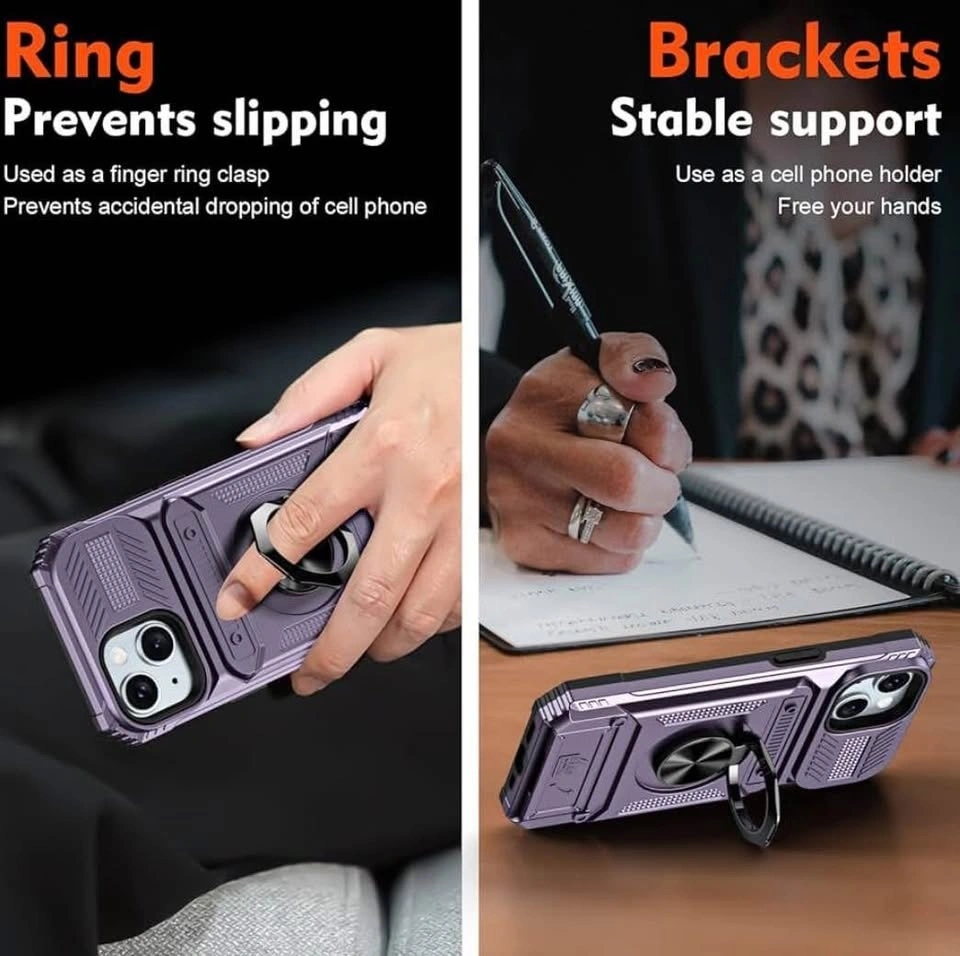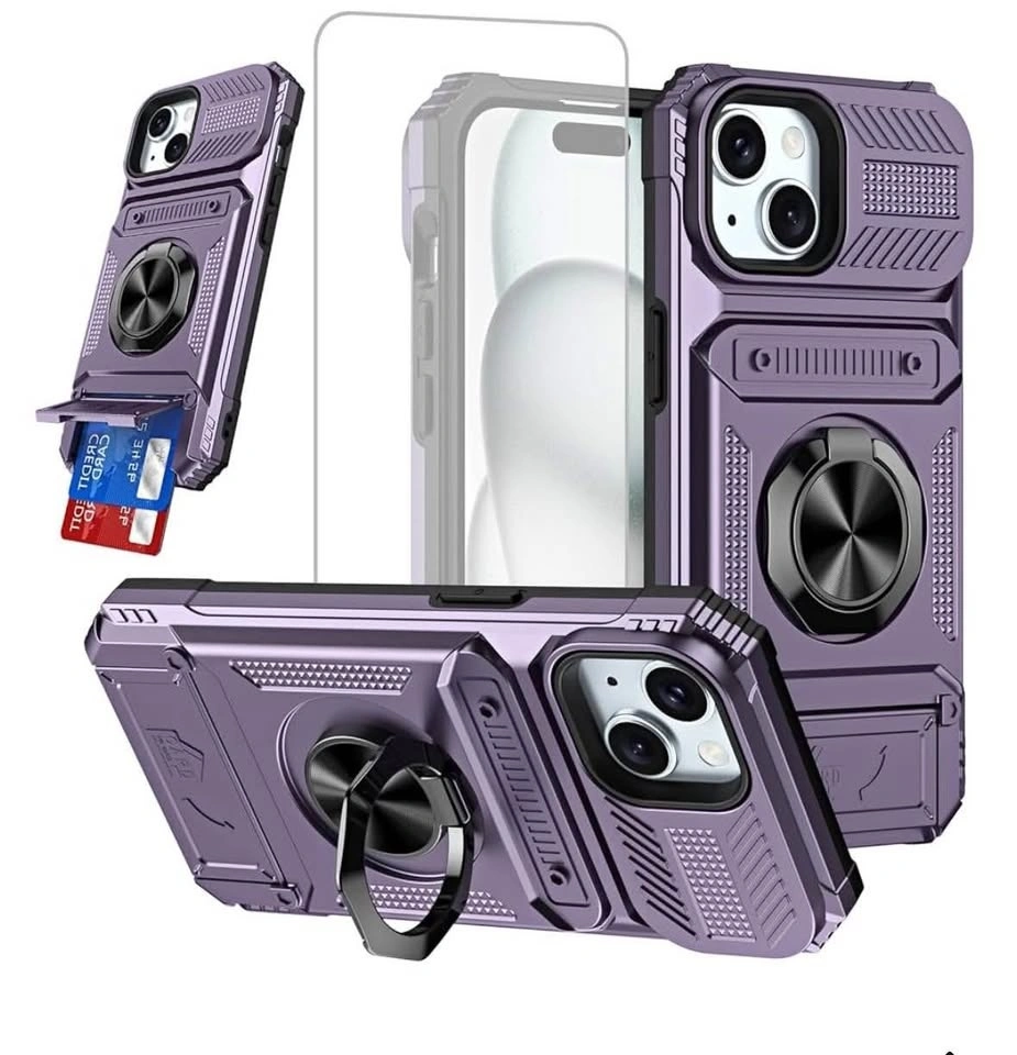 Purple iPhone 15 Pro Max Case with 360° Ring - New