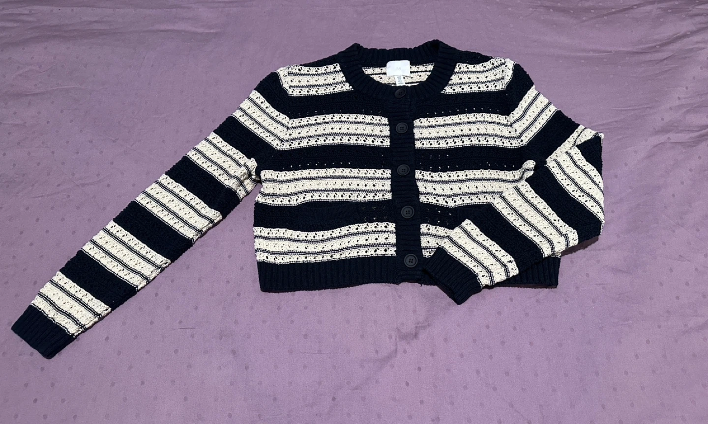 H&M Navy & Cream Striped Knit Cardigan - Size S