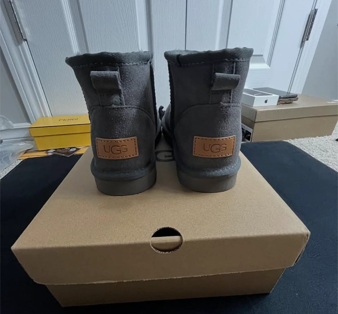 Selling a pair of Ugg Classic Mini boots in grey. They come with the original box! These are in great condition and ready for a new home. Perfect for keeping your feet warm and cozy during the colder months!