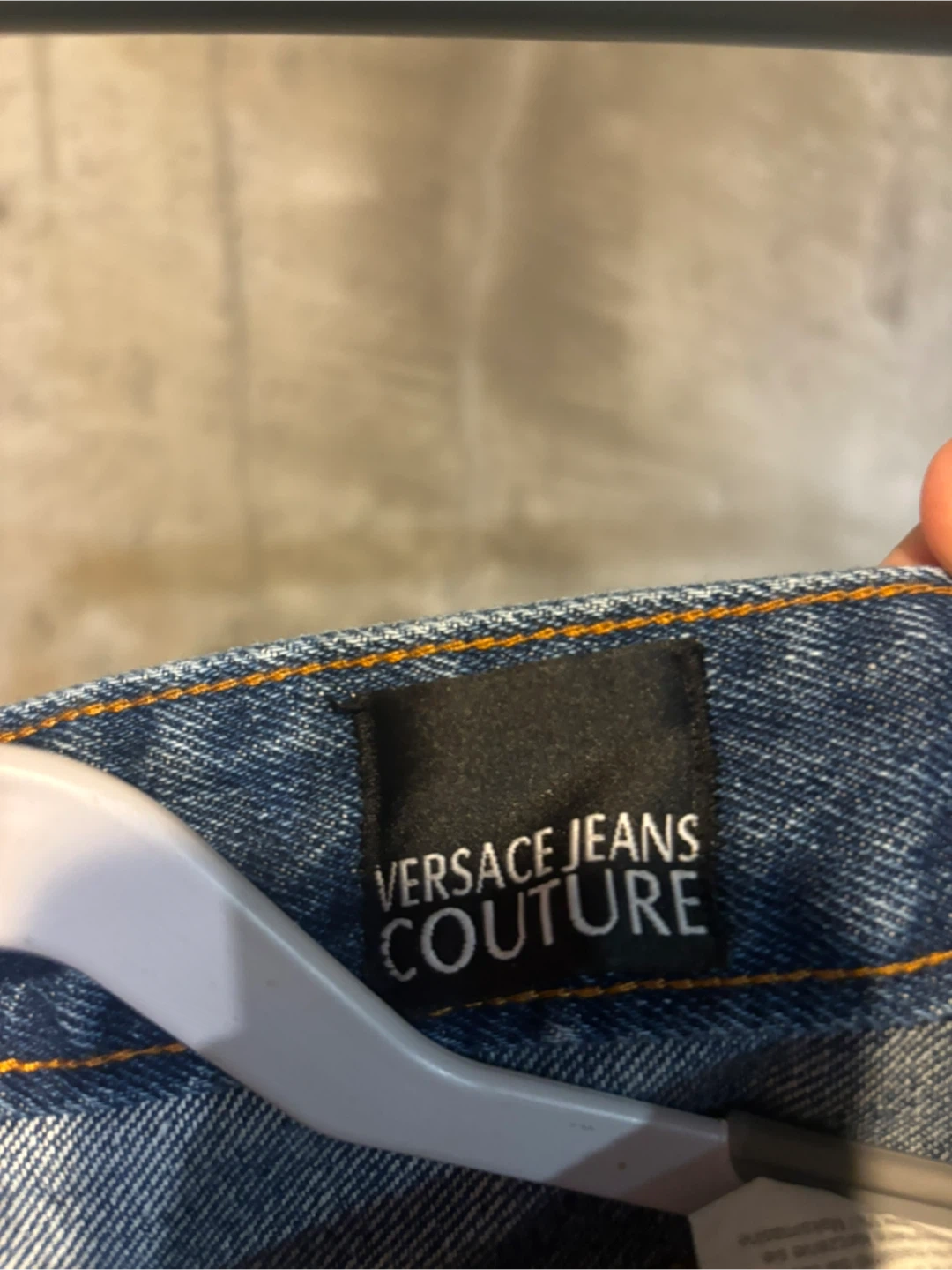 Here are some Versace Jeans Couture denim pants. They are blue and have a unique design with extra pockets. The pants are in good condition!