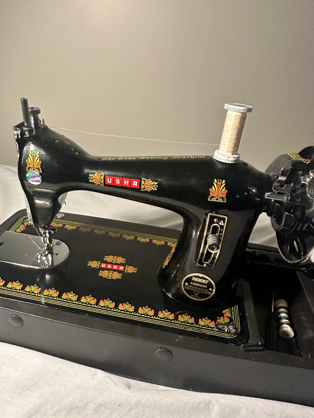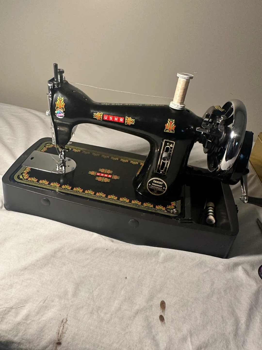 Selling a vintage USHA sewing machine! It's in great condition and would be perfect for someone who loves sewing or collecting vintage items. It's a beautiful piece with intricate details and a classic design.