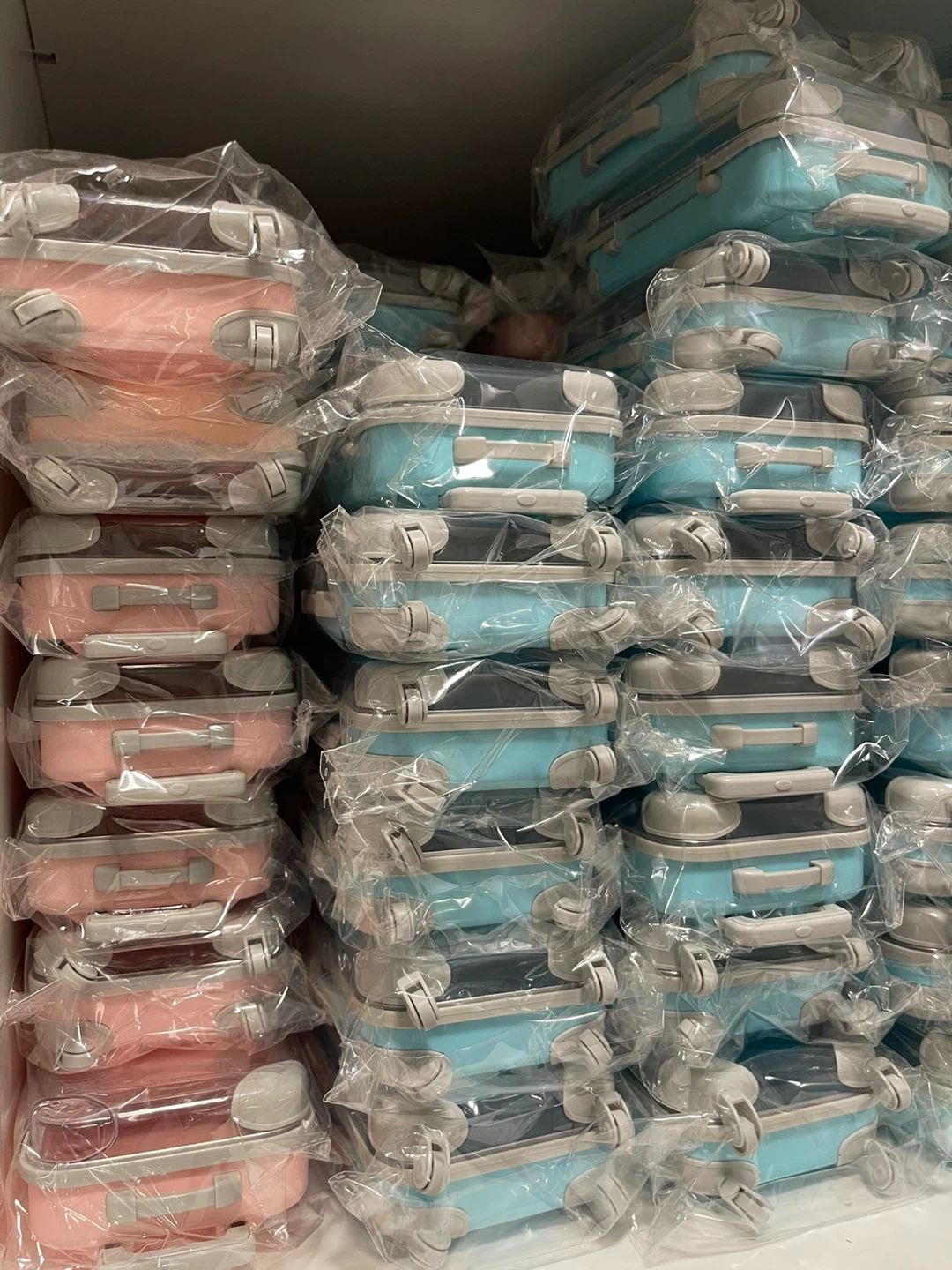 Bought these to use as party gift bags but didn’t end up using them. I have over 40 Blue Suitcases & 50 Pink Suitcases. Brand new in plastic wrap.