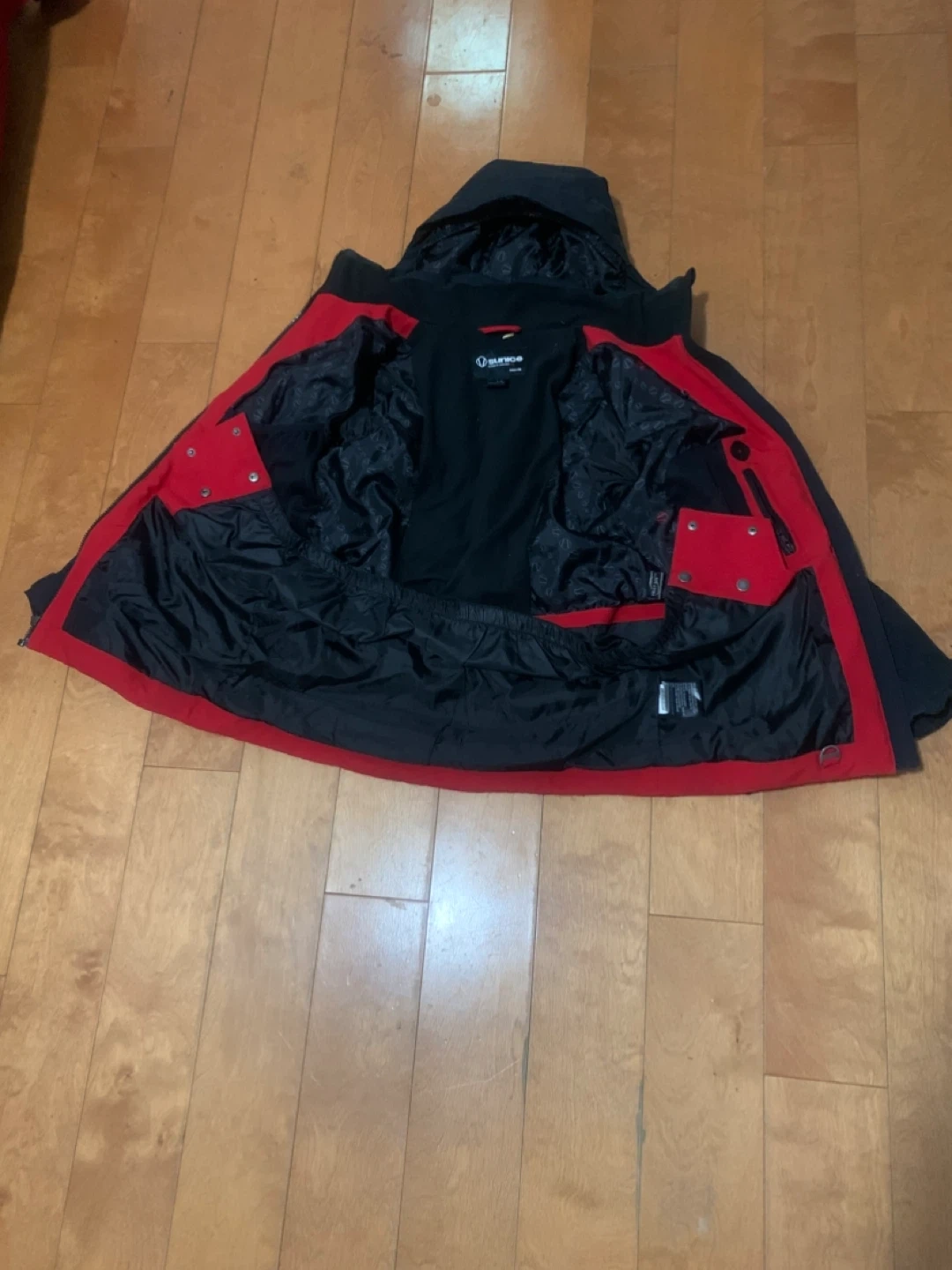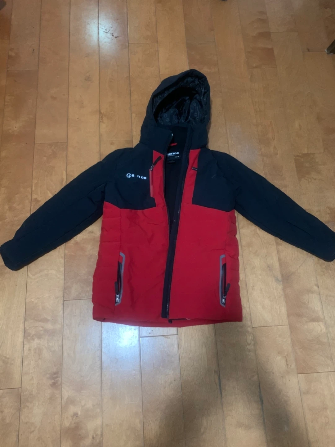 Here's a Sunice winter jacket in a striking red and black colour block design. It's in great shape and ready to keep you warm this winter season!