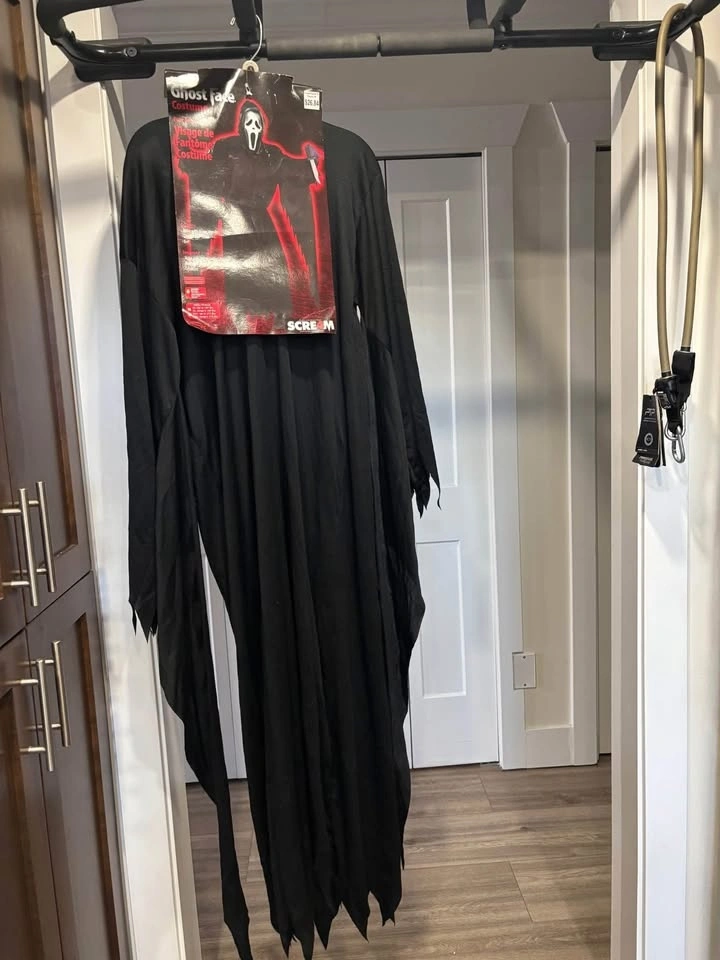 4. Scream Ghost Face Costume: Robe with drape sleeves, Ghost Face Mask, Belt, Size: XL: up to 180 lbs $15