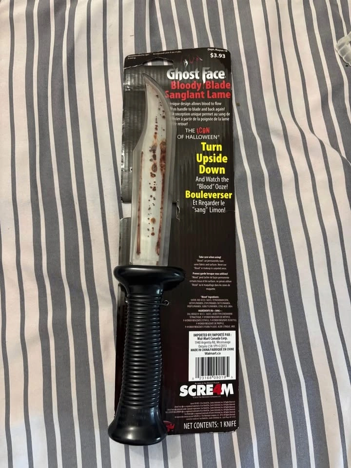 6. Scre4m Ghost Face Bloody Blade: Unique design allows blood to flow from handle to blood and back again! $2