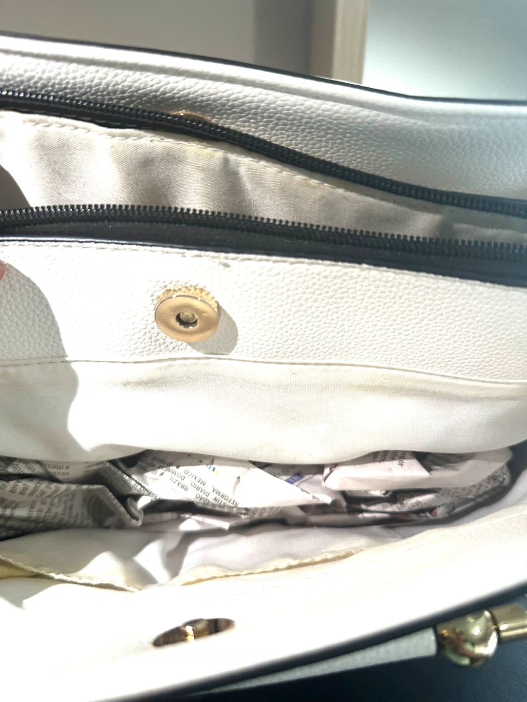 Beautiful White 3 compartment satchel. Excellent condition. Lots of compartment and comes with a long shoulder strap. Just used once for an occasion.