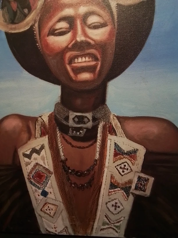 This is an original oil painting portrait of an African girl, signed by the artist V. DELL'ANGELA. The artwork captures the subject with striking detail and emotion. It's in good condition, showcasing a unique cultural depiction. A wonderful piece for any art collector!