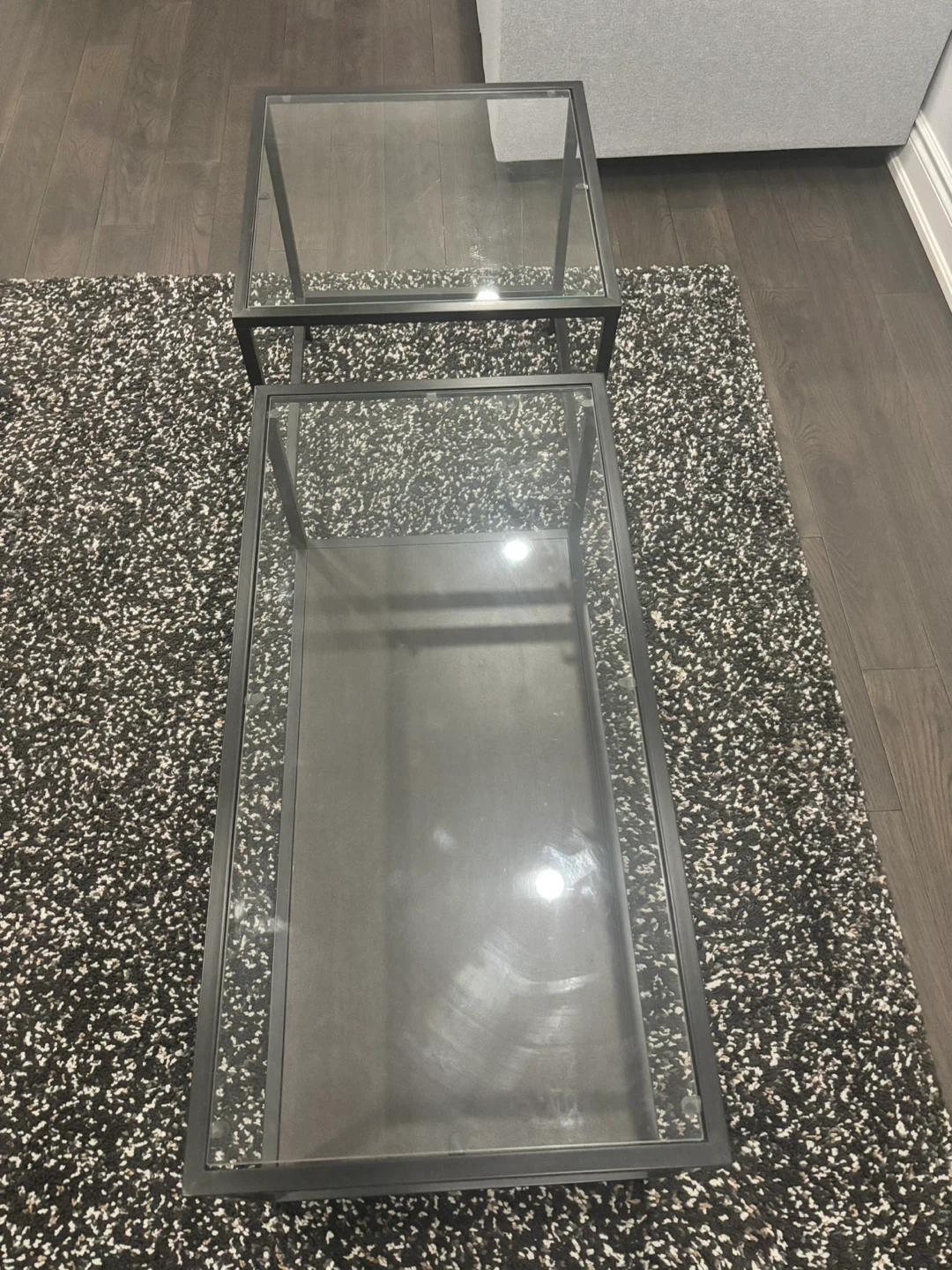 Selling a glass coffee table and matching side table set. They're in great shape and would look lovely in any living room! Price is negotiable