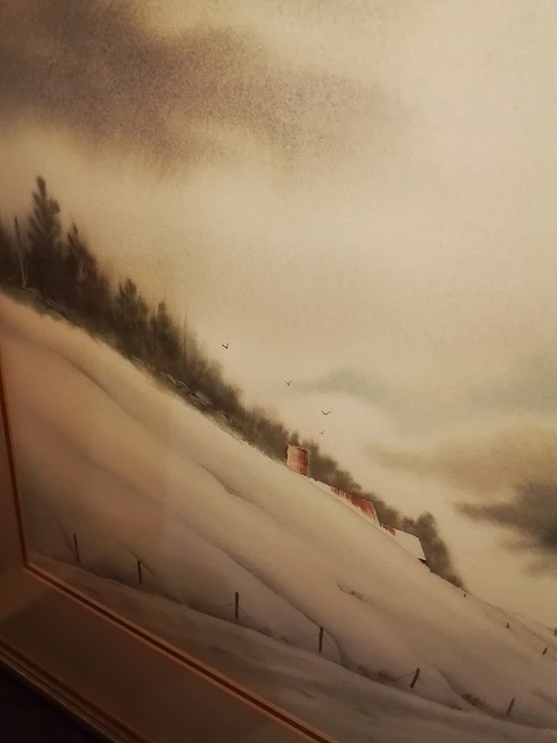 Vintage Original Watercolor Painting Winter Mood Signed